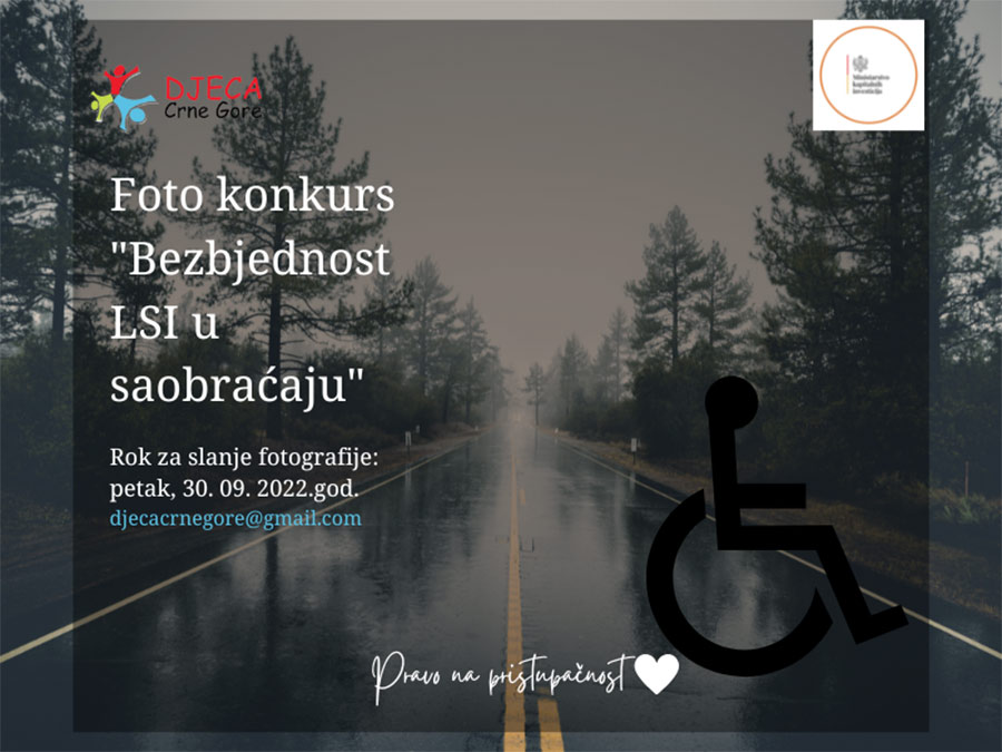The competition for sending photos is part of the project "Safety of LSI in traffic", which is implemented by the NGO "Children of Montenegro" with the financial support of the Ministry of Capital Investments as part of the competition for NGOs in the field of protection of persons with disabilities in traffic.